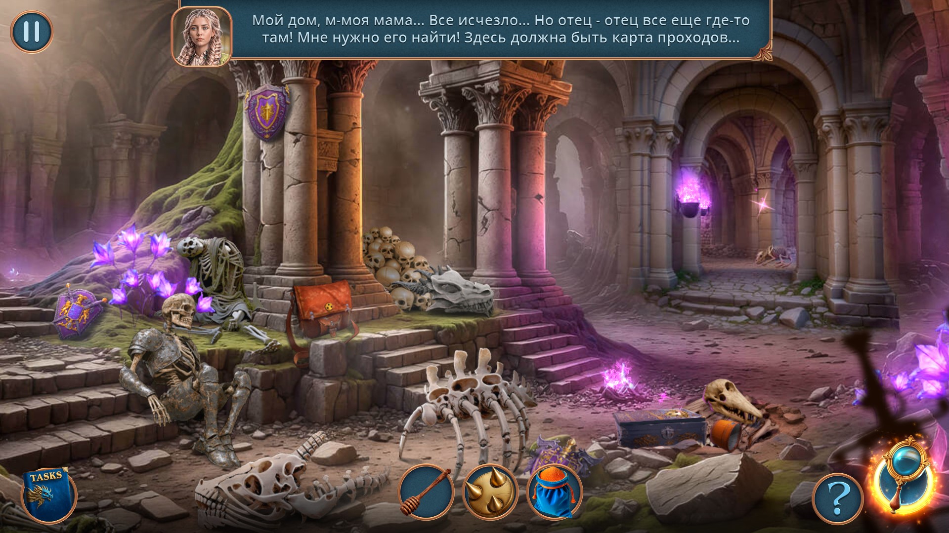 Игра "Рыцарский Квест: Меч и Пламя" отличается глубоким, проработанным миром. Он постепенно раскрывается перед геймером через воспоминания, возникшие при тех или иных обстоятельствах. Разумеется, ждут игрока и многочисленные головоломки – от привычного поиска предметов до сложных логических задач. Кстати, если вам не нравится жанр я ищу, то всегда можно переключиться на альтернативный режим прохождения – три в ряд. Для этого щелкните по соответствующей кнопке в левом верхнем углу. Выполнив задание, вы получите искомый предмет и сможете продолжить прохождение.